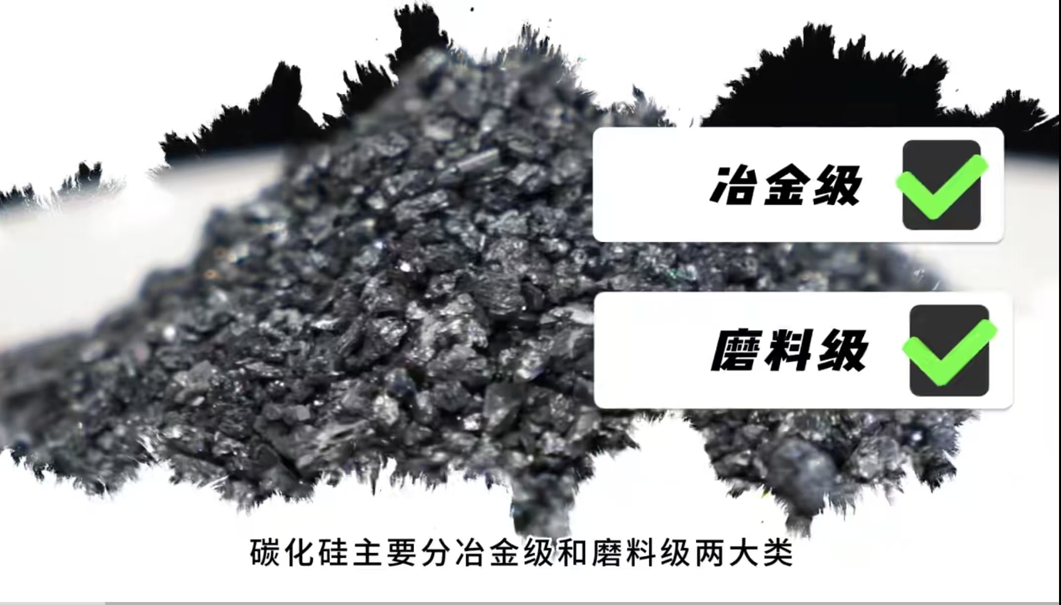 碳化硅是由硅元素和碳元素以共价键形式结合的非金属碳化物,碳化硅主要分冶金级和磨料级两大类,外观多呈黑色,其中冶金级碳化硅的含量为90%左右,磨料级碳化硅的含量为97%以上。